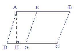 Tính diện tích hình bình hành ABCD và diện tích hình bình hành AEGH, biết AB=15cm, GC=9cm, AH= 7cm.