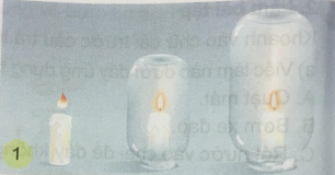 b. Tiến hành thí nghiệm: Thắp ba ngọn nến cùng một lúc và đặt lên bàn nhẵn, cùng một lúc úp hai lọ thủy tinh vào 2 ngọn nến.