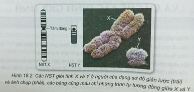 - Hãy quan sát hình 18.2 và cho biết, NST X và Y khác nhau như thế nào?