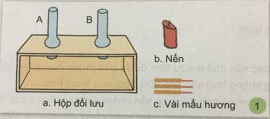 Đặt một số cây nến đang cháy dưới ống A. Đặt vài mẩu hương đã tắt lửa nhưng cong khói vào dưới ống B.