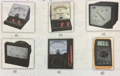 Hãy quan sát hình ảnh một số đồng hồ đo điện trên hình 2.3, cho biết tên gọi và đại lượng đo tương ứng với mỗi đồng hồ đó
