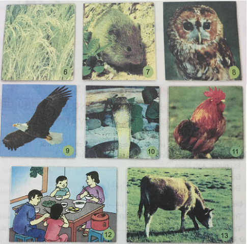 a. Lấy thẻ tranh các sinh vật và thẻ mũi tên ở góc học tập: