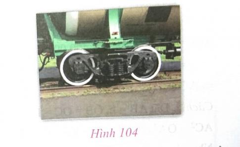 Bánh của tàu hỏa và đường ray tàu trên một đoạn đường có vị trí như thế nào với nhau? (Nếu xem bánh xe của tàu hỏa là hình tròn và đường ray là đường thẳng, hình 104).
