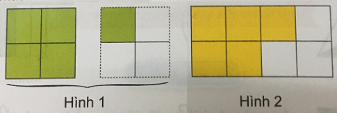 Cho hai phân số $\frac{5}{4}$ và $\frac{5}{8}$. Phân số nào chỉ phần đã tô màu của hình 1? Phân số nào chỉ phần đã tô màu của hình 2?