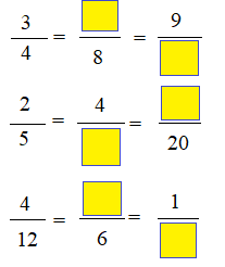 Các phân số bằng nhau chỉ số phần đã tô màu ở các hình trên là: ...... = ........