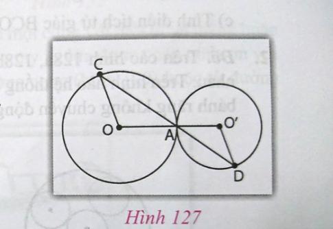 Trên hình 127, hai đường tròn tiếp xúc tại A.