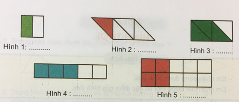 Viết phân số biểu thị phần đã được tô màu trong mỗi hình sau: