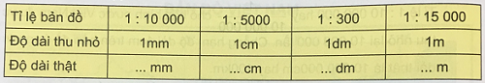 Em hãy cho biết, độ dài thu nhỏ trên bản đồ là bao nhiêu, nếu: