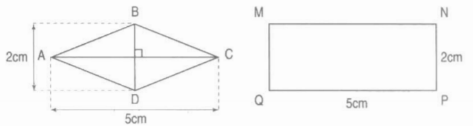 b) The area of a rhombus is equal to $\frac{1}{2}$ areas of a rectangle