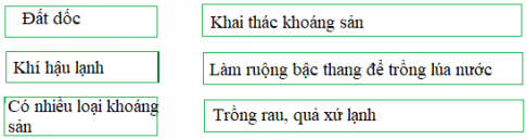 Vẽ mũi tên nối các ô thích hợp với nhau để thể hiện mối quan hệ giữa thiên nhiên và hoạt động sản xuất của con người ở Hoàng Liên Sơn.
