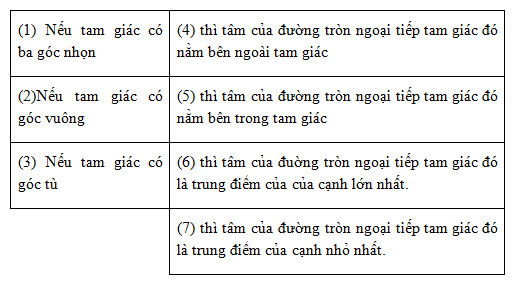 b. Nếu một tam giác có một cạnh là đường kính của đường tròn ngoại tiếp thì tam giác đó là tam giác vuông.