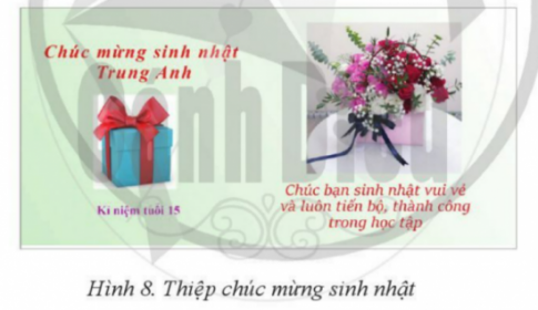 Em hãy thực hiện ghép ảnh để thiết kế một thiệp chúc mừng sinh nhật ở Hình 8.
