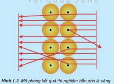 Câu 3. Quan sát hình ảnh mô phỏng kết quả thí nghiệm bắn phá lá vàng thực hiện bởi Rutherfoed và nhận xét về đường đi của các hạt α.