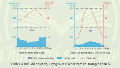 a. Dựa vào hình 1.2, em hãy cho biết hai trạm khí tượng trên đây thuộc kiểu khí hậu nào?