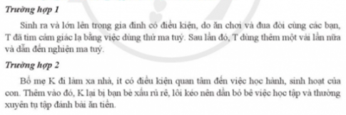 a) Em hãy cho biết những nguyên nhân nào dẫn đến T nghiện ma tuý, K tụ tập đánh bài?