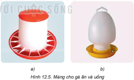 Khám phá: Quan sát Hình 12.5 và cho biết đâu là máng ăn, đâu là máng uống?