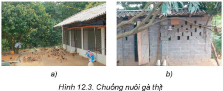 Khám phá: Quan sát Hình 12.3 và cho biết nên chọn loại chuồng nào để nuôi gà thịt. Tại sao?