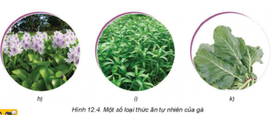 Khám phá: Sắp xếp các loại thức ăn tự nhiên của gà trong Hình 12.4 vào các nhóm dinh dưỡng thích hợp
