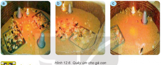 Em hãy quan sát sự phân bố của gà con trong Hình 12.6 và cho biết mức độ thích hợp của nhiệt độ với gà trong từng ô úm. Hãy đề xuất giải pháp để nhiệt độ của các ô úm phù hợp với gà.