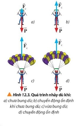 Luyện tập 1: Quan sát Hình 12.3, mô tả chuyển động của vận động viên nhảy dù từ khi bắt đầu nhảy khỏi máy bay đến khi chạm đất. Phân tích lực tác dụng lên dù trong từng giai đoạn chuyển động