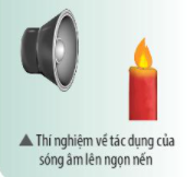 Vận dụng: Mô tả hiện tượng xảy ra với ngọn nến trong thí nghiệm dưới đây khi người ta bật loa phát nhạc (với âm lượng vừa). Giải thích hiện tượng.