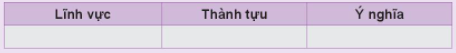 Câu 1. Lập và hoàn thành bảng thống kê về một số thành tựu chính trên các lĩnh vực theo mẫu dưới đây.