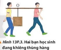 Bài tập 3: Hai người đang khiêng một thùng hàng khối lượng 30kg bằng một đòn tre dài 2m. Hỏi phải treo thàng hàng ở điểm nào để lực đè lên vai người đi trước 100N. Bỏ qua khối lượng của đòn tre.