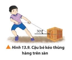 Luyện tập 2: Một cậu bé đang kéo thùng hàng trên mặt đất bằng sợi dây hợp với phương ngang một góc ( hình 13.9). Hãy tìm độ lớn lực kéo thành phần trên hai phương vuông góc và song song với mặt đất, biết độ lớn lực kéo cậu bé tác dụng lên dây là 12N