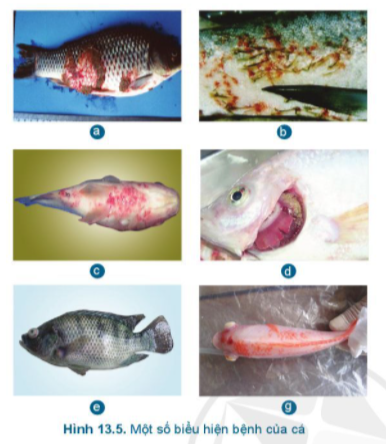 LT: Em hãy quan sát các biểu hiện bệnh của cá trong Hình 13.5 và ghép với tên bệnh sau: