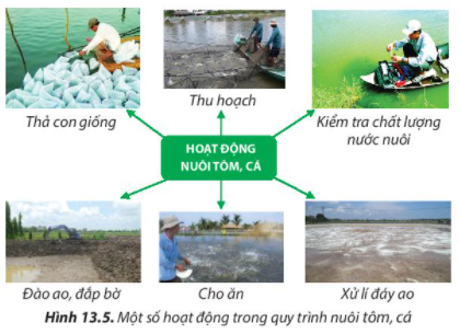 Câu hỏi 9. Em hãy sắp xếp các hoạt động nuôi tôm, cá trong hình 13.5 theo thứ tự hợp lí