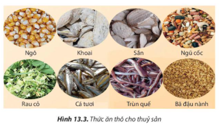 Câu hỏi 4. Quan sát hình 13.2; 13.3; 13.4, hãy phân biệt và đánh giá ưu, nhược điểm của các loại thức ăn cho tôm, cá.