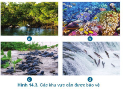 LT: Em hãy nêu tên các khu vực cần, được bảo vệ trong Hình 14.3