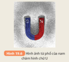 Câu hỏi 2. Hình 19.6 cho biết từ phổ của nam châm hình chữ U. Dựa vào đó hãy vẽ đường sức từ của nó. Có nhận xét gì về các đường sức từ của nam châm này?