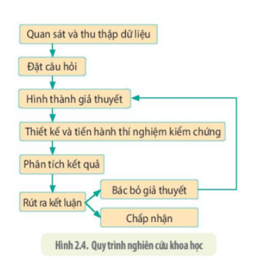 1. Quan sát hình 2.4, nêu trình tự các bước trong tiến trình nghiên cứu khoa học.