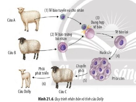 Câu hỏi 7: Quan sát hình 21.6 và trình vày quy trình nhân bản vô tính vật nuôi.