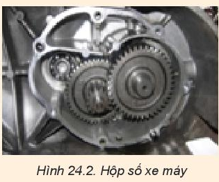 Câu hỏi 2. Hình 24.2 mô tả hộp số xe máy. Hãy giải thích tại sao khi đi xe máy trên những đoạn đường dốc hoặc có ma sát lớn ta thường đi ở số nhỏ.