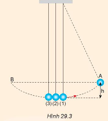 Câu hỏi 3. Trong hìh 29.3, nếu kéo bi (1) lên thêm một độ cao h rồi thả ra, con lắc sẽ rơi xuống và va chạm với hai con lắc còn lại. Hãy dự đoán xem, va chạm là va chạm gì. Con lắc (2), (3) lên tới độ cao nào ? Làm thí nghiệm để kiểm tra.