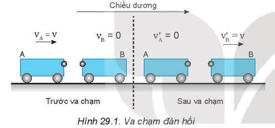 Câu hỏi 1. Hãy tính động lượng và động năng của hệ trước và sau va chạm đàn hồi. ( hình 29.1 )