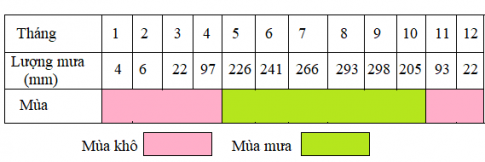 c. Dựa vào bảng số liệu dưới đây, hãy cho biết mùa mưa và mùa khô Buôn Ma Thuột diễn ra vào những tháng nào.