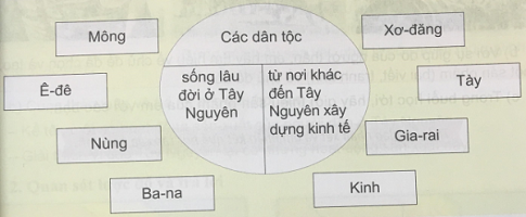 Các nhóm thảo luận rồi nối tên một số dân tộc ở Tây Nguyên với nửa vòng tròn ở giữa sao cho phù hợp.