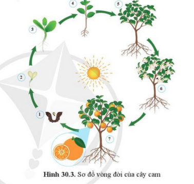 Câu hỏi 3. Quan sát hình 30.3 trình bày các giai đoạn sinh trưởng và phát triển tương ứng từ (1) đến (7) của cây cam