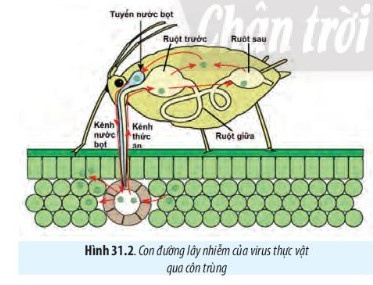 Câu hỏi 4: Quan sát Hình 31.2, hãy trình bày con đường lây nhiễm virus ở thực vật qua côn trùng.