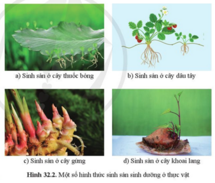 Câu hỏi 3. Quan sát hình 32.2 cho biết cây con được hình thành từ bộ phận nào của cây mẹ ? từ đó phân biệt các hình thức sinh sản sinh dưỡng ở thực vật