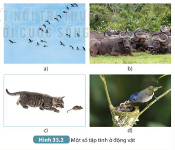 Câu hỏi 1: Đặt tên tập tính của các động vật thể hiện trong hình 33.2a,b,c,d