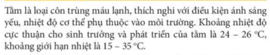 - Tằm là động vật máu lạnh, hằng nhiệt, không ưa ánh sáng và gió.