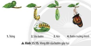 Câu hỏi 13. Trong Hình 35.15 ở giai đoạn nào trong vòng đời bướm có khả năng phá hoại mùa màng?