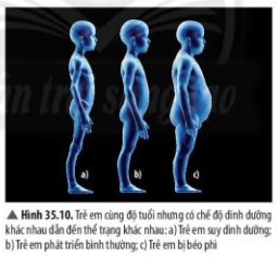 Câu hỏi 8. Chế độ dinh dưỡng có liên quan đến sự phát triển về thể trạng của các em bé trong Hình 35.10 như thế nào?