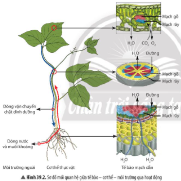 Câu hỏi 3. Quan sát Hình 39.2, hãy nêu mối quan hệ giữa tế bào - cơ thể - môi trường thông qua hoạt động trao đổi chất ở thực vật.