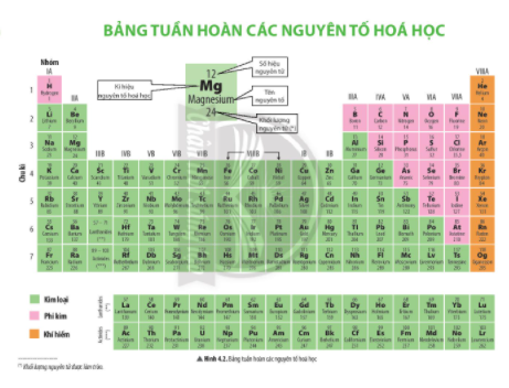 Câu hỏi 2. Dựa vào thông tin được cung cấp và Hình 4.2, em hãy cho biết bảng tuần hoàn được cấu tạo như thế nào?