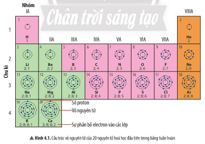 Bảng tuần hoàn các nguyên tố hóa học được xây dựng dựa trên nguyên tắc về cấu trúc của nguyên tử. Mỗi nguyên tố trong bảng tuần hoàn được xác định bởi số lớp electron và số electron ở lớp ngoài cùng.